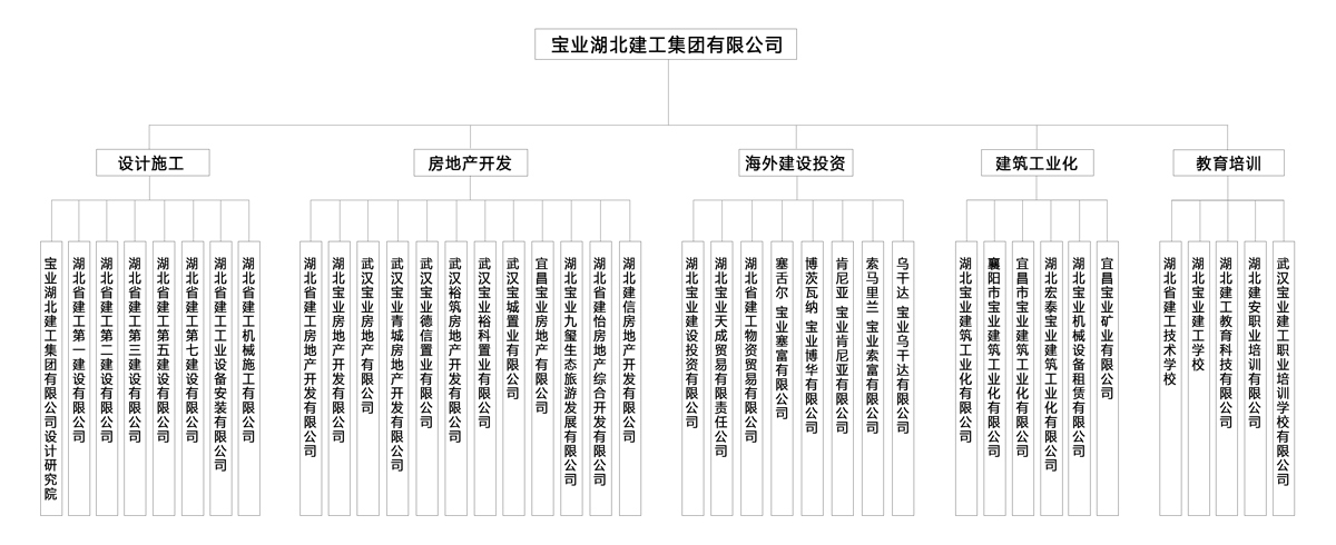 湖北宝业建设投资有限公司 | 湖北省建工第二建设有限公司 | 湖北省建工第五建设有限公司 | 湖北省建工工业设备安装有限公司 | 湖北省建工房地产开发有限公司 | 武汉宝业青城房地产开发有限公司 | 湖北宝业建筑工业化有限公司 | 塞舌尔·宝业塞富有限责任公司 | 博茨瓦纳·宝业博华有限责任公司
